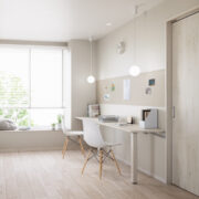 異なる部屋が同じ空間に広がるため、色使いや素材に工夫を凝らして、全体の調和をとる必要があります。