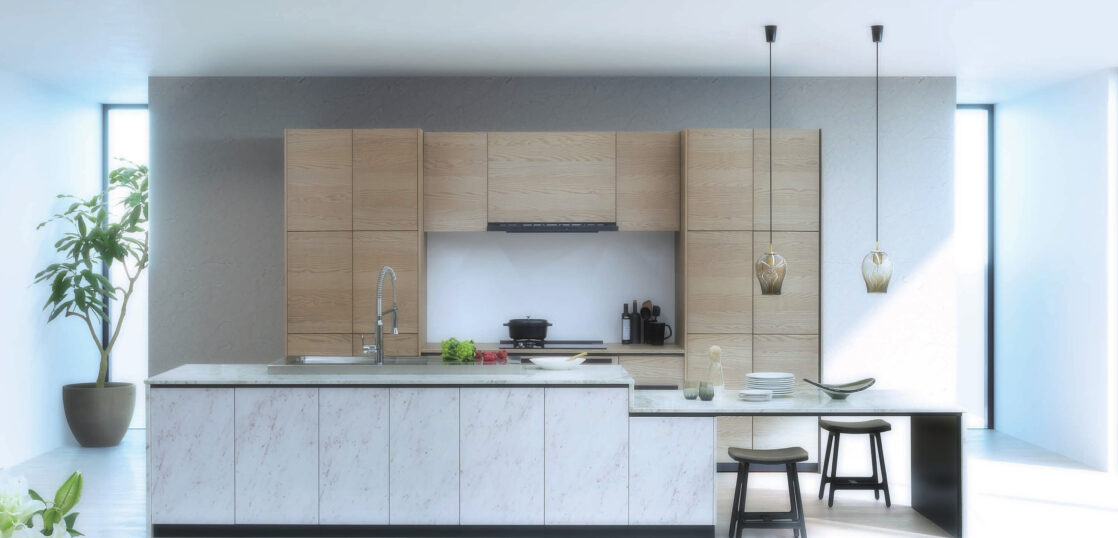 本格調理にこだわる人の素材で、「デザイン性」「作業性」「清潔性」をすべて兼ね備えたキッチンです。