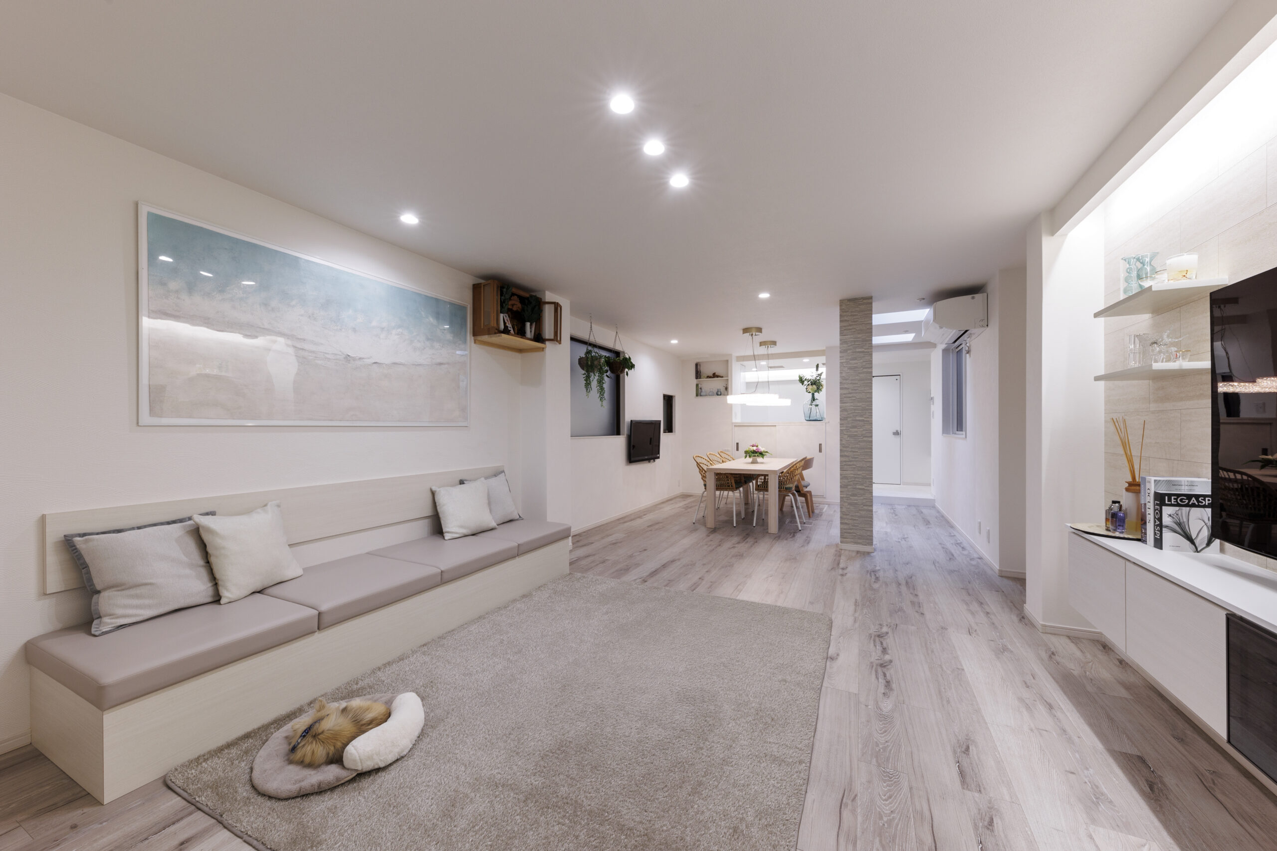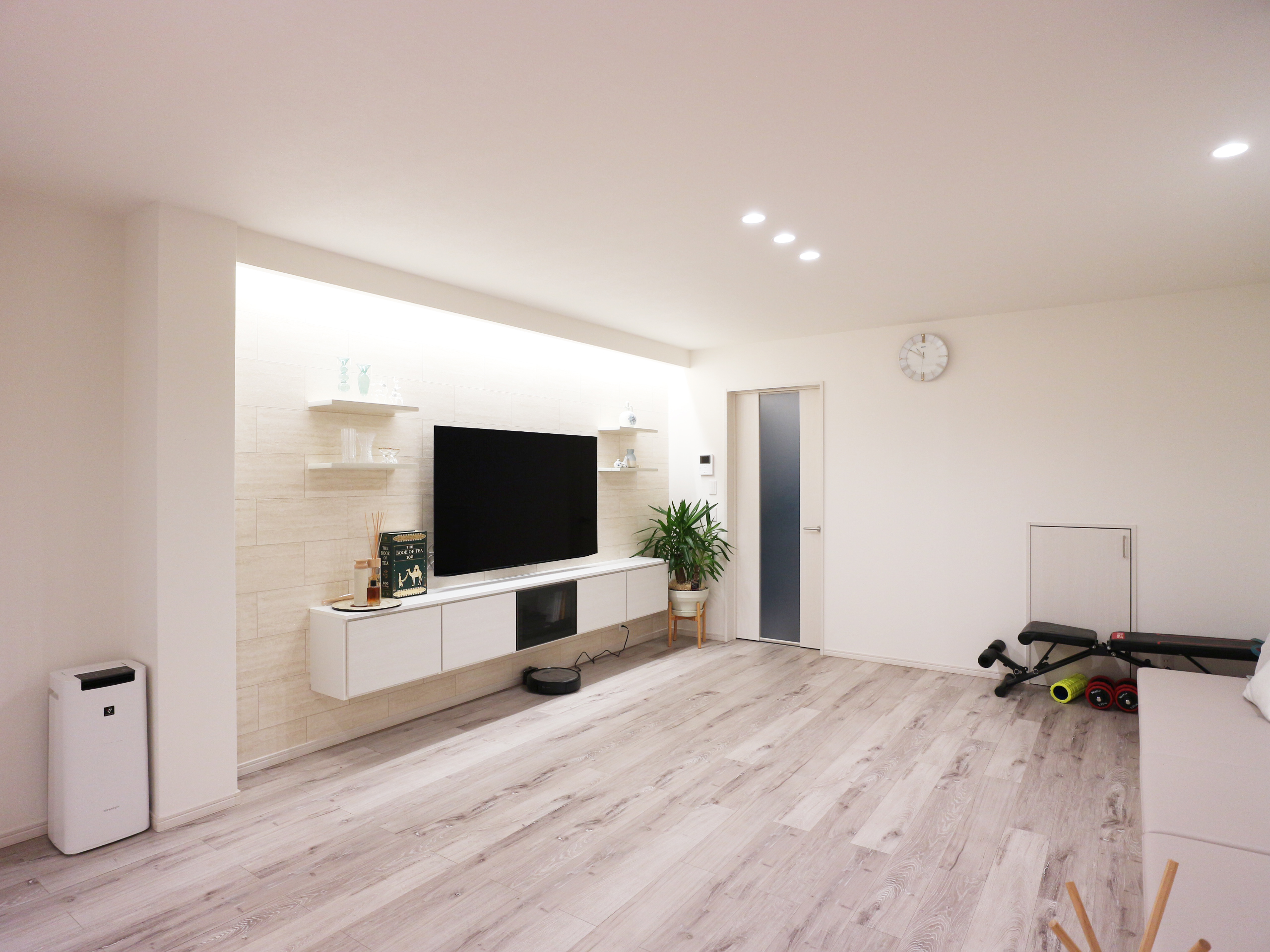 また、リビングの壁側の柱と壁との間に間接照明を仕込めば、夜の空間にやさしい光が広がり、まるでホテルのような雰囲気に。