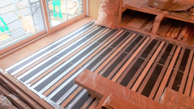 電気式床暖房は、床下に電熱ヒーター(発熱シートやケーブル)を敷き、その熱で床を暖める方式です。電気を直接使うため、ガス設備などを持たない住宅にも導入しやすいのが特徴です。