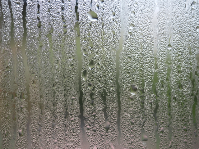 結露は、室内のあたたかい空気に含まれる水蒸気が、冷たい窓や壁に触れることで発生します。