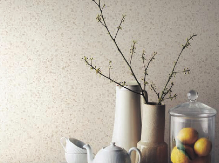 壁仕上げ材「ベリティスウォール不燃」は意匠性の高さに加え、火に強い不燃性能とお掃除のしやすさを兼ね備えた優れもの。キッチンの壁面に取り入れることで、安全性を保ちながら、空間にアクセントを加えることができます。