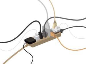 タコ足配線、延長コードだらけのテレビ裏やキッチン。
