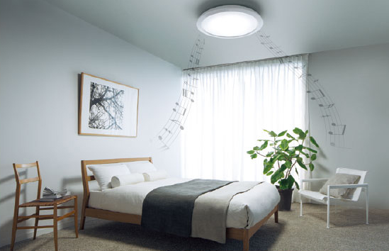 ①スピーカー付きシーリングライトで音と光に包まれる寝室へ