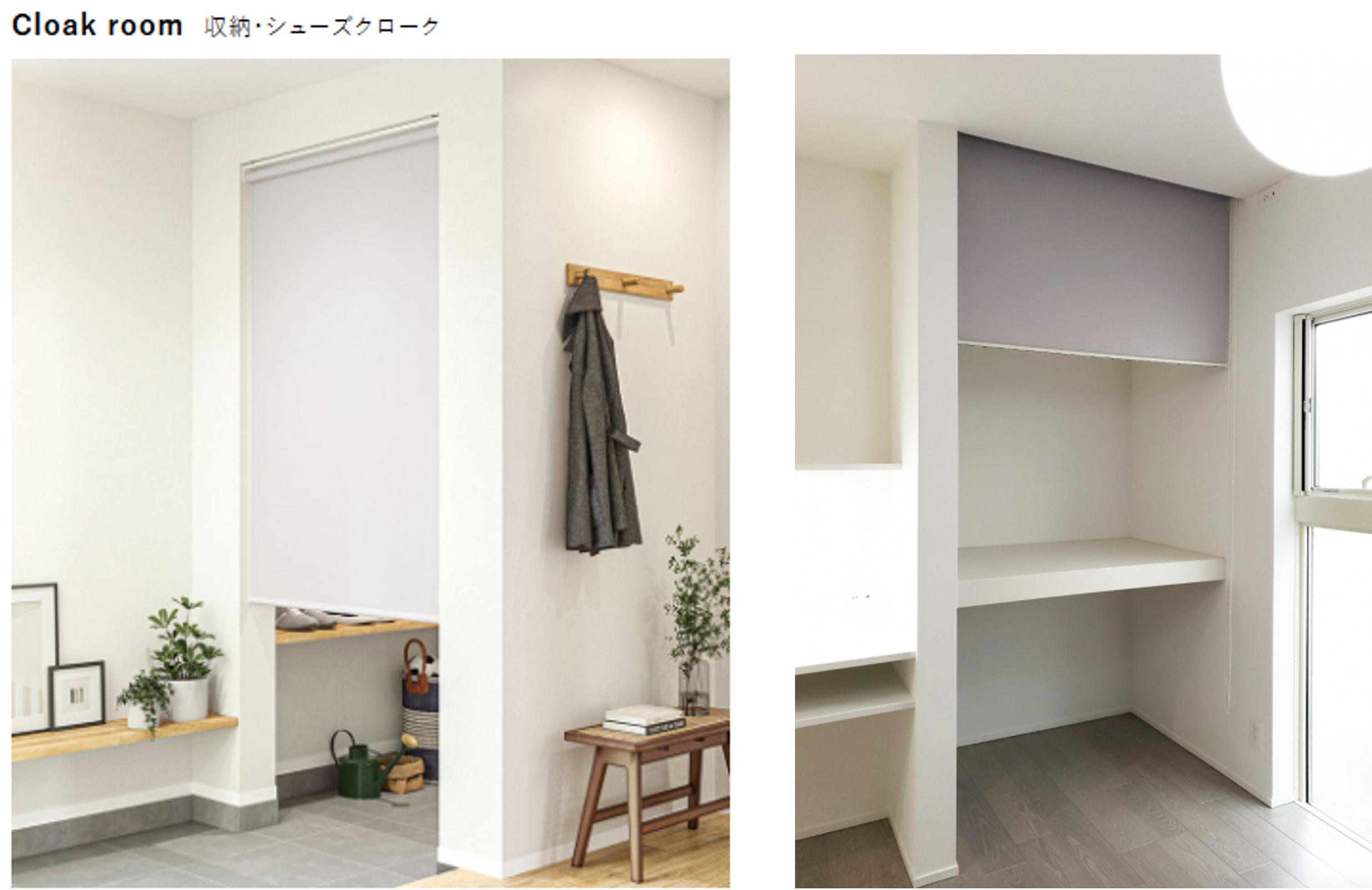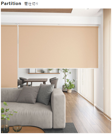 壁や扉で完全に塞ぎたくは無いけど、場合によっては仕切りたい時がありますよね。その時は、ロールスクリーンを間仕切りとして使用するのも選択肢の一つです。 ただ、音の遮断は難しいのでご注意を!!