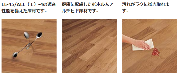 床衝撃音は2種類あり、軽量床衝撃音(LL)と重量床衝撃音(LH)です。 遮音等級は必ず確認し、LL-45以下の表記の床材を選ぶことを推奨いたします。