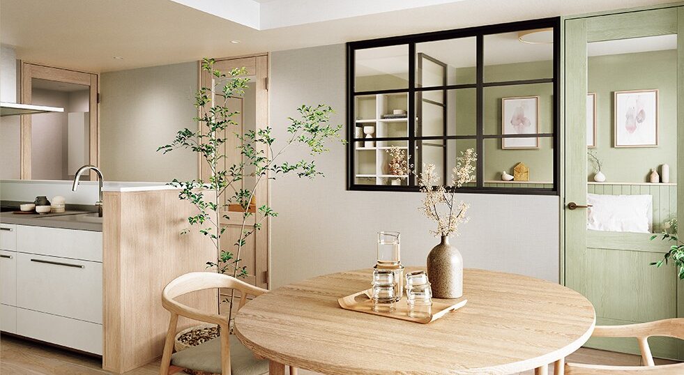 さらに、室内ドアや床材などの内装建材を見直すことも、空間の印象を大きく左右します。パナソニック「ベリティス」シリーズは、扉や床の色柄をトータルで揃えやすく、空間に統一感を持たせやすいのが特長です。明るい色味や木目を選ぶことで、子育て世代の住まいでも圧迫感を抑え、やさしく広がりのある空間を演出できます。