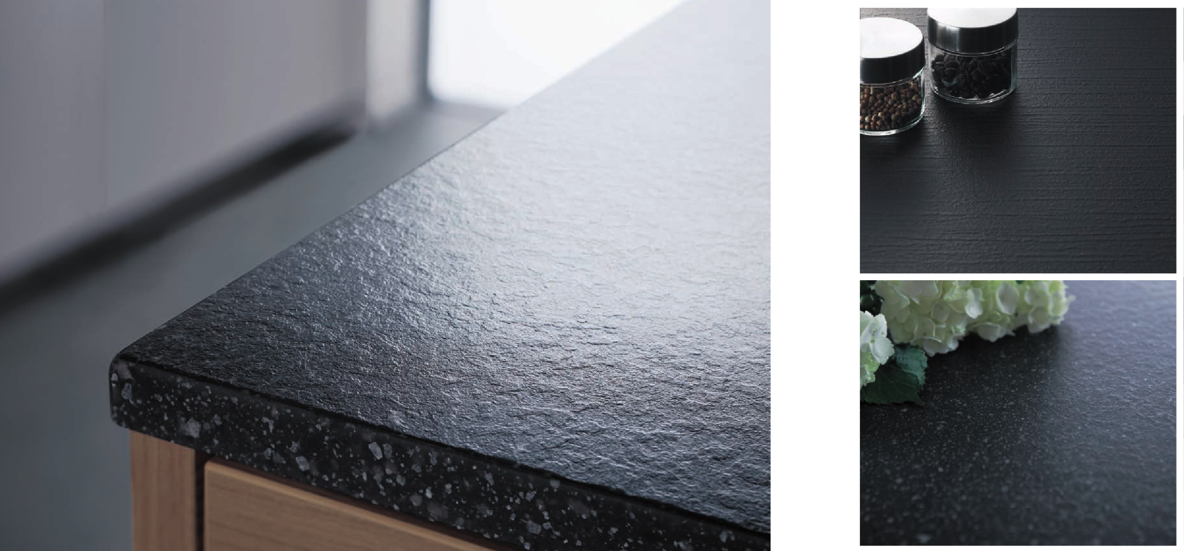 熱・キズ・汚れにも強いワークトップです。繊細な質感と多彩な表情のカラーがあるのも特徴です。