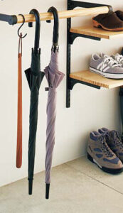 しゃがんで物を取り出す収納は、腰への負担になりやすいものです。中段の棚を増やしたり、取り出しやすい高さに収納を配置したりすると、日常の動作が楽になります。外出時に使うバッグや帽子、傘、杖などは腰の高さに収納すると便利です。