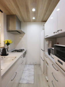 既存のキッチンと新設キッチンの奥行の違いでキッチンの通路が狭くなってしまうケースがあるので、同じ位置に設置する時は、キッチン選びに注意が必要です。