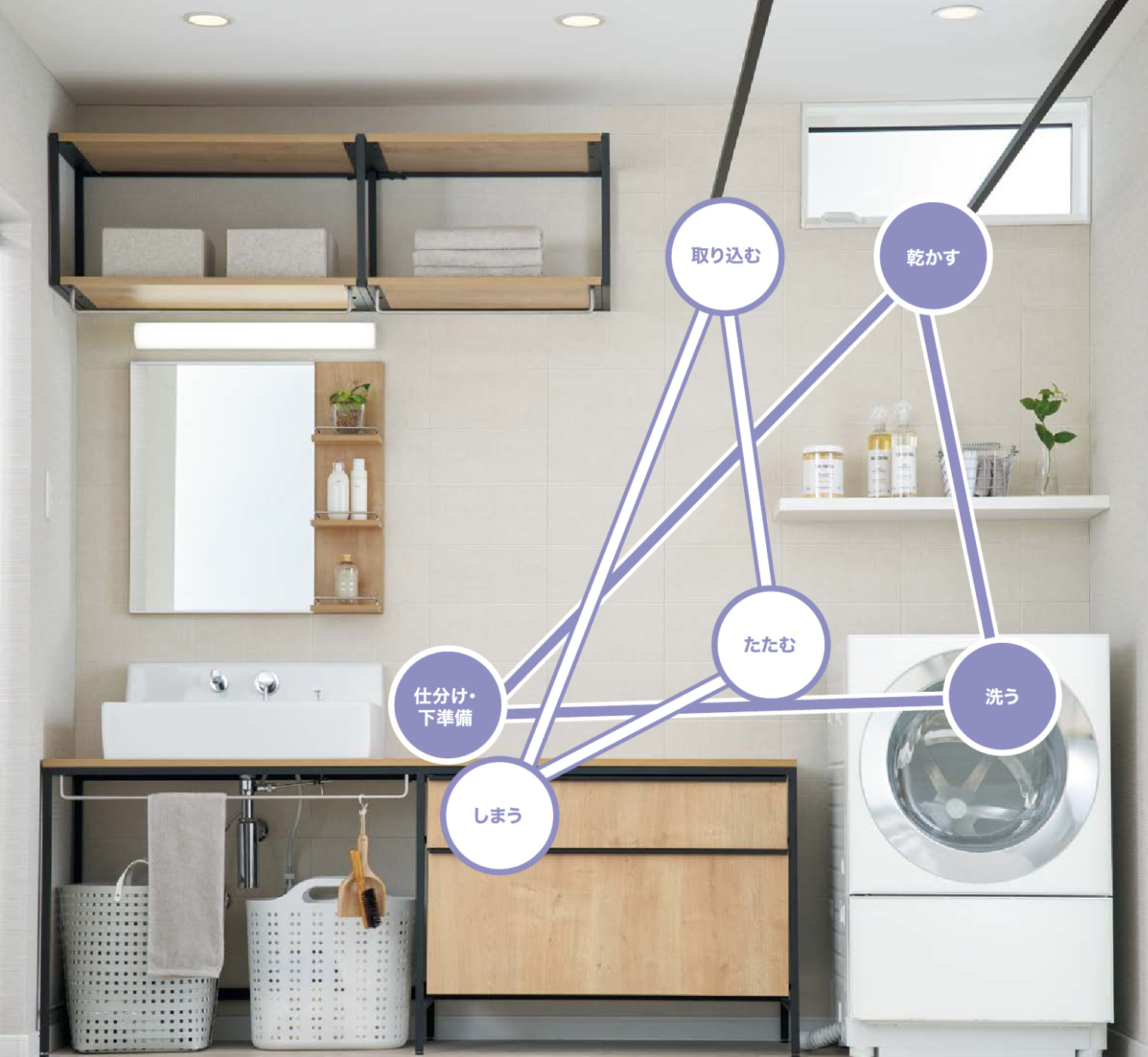 家事動線を考えてランドリールームをつくるのに、基本的なポイントをまとめました。