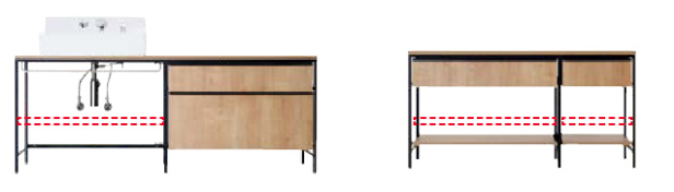 作業台と収納の高さ
