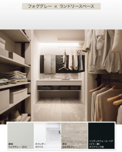 まず一つ目はクローゼット付近への設置です。朝の身支度を効率化したい方にとって非常に相性の良い配置です。たとえばファミリークローゼットの近くに洗面台を設けることで、「起きる→顔を洗う→着替える→身だしなみを整える」という一連の流れが一か所で完結します。特に共働き世帯やお子様のいるご家庭では、朝の混雑を軽減できるメリットも大きいでしょう。また、洗濯後の衣類をそのまま収納できる動線と組み合わせれば、家事効率の向上にもつながります。その配置では一方で、水はねや湿気の対策、収納スペースとのバランスに注意が必要です。内装材の選定や換気計画をしっかり行うことがポイントになります。