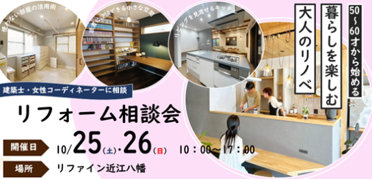 こんにちは、リファイン近江八幡のいとです。 暮らしを楽しむ大人のリフォーム相談会